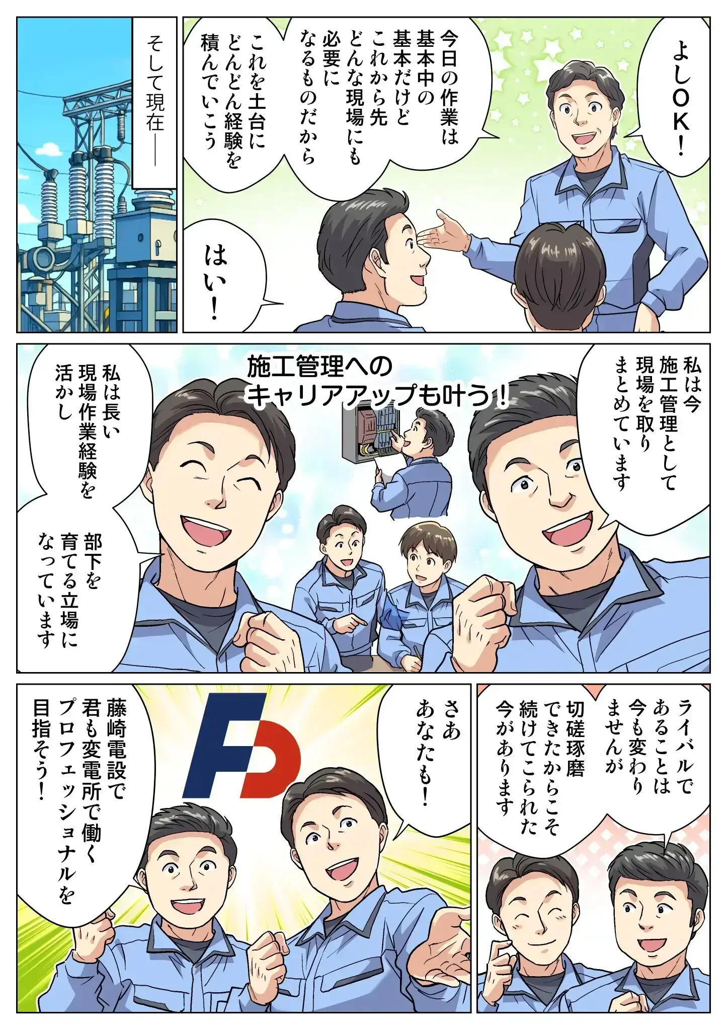 「作業」だけでなく「管理」の視点も学べるのが、藤崎電設で働く大きな魅力です。